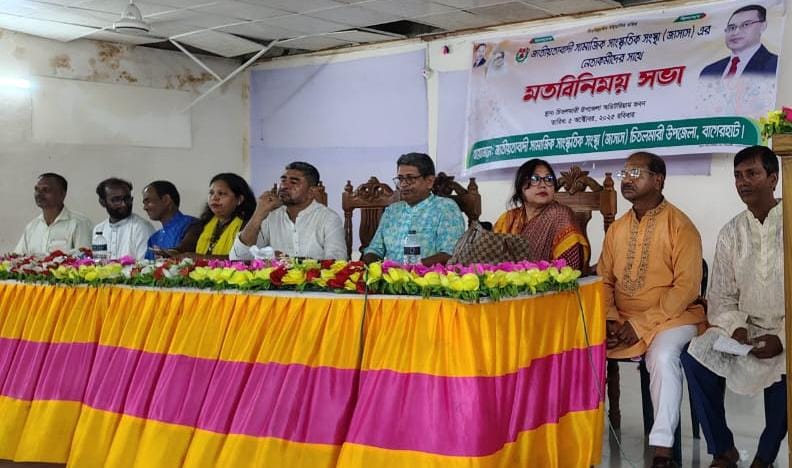 বাগেরহাটের চিতলমারীতে বাংলাদেশ জাতীয়তাবাদী সামাজিক সাংস্কৃতিক সংস্থা (জাসাস)-এর উদ্যোগে মতবিনিময় সভা অনুষ্ঠিত হয়েছে। রবিবার (৫ অক্টোবর) বিকেলে উপজেলা অডিটোরিয়ামে আয়োজিত
