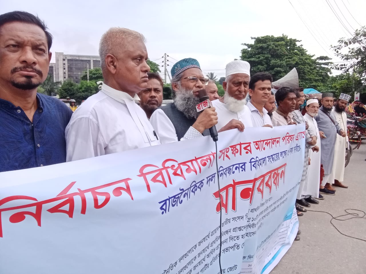 নির্বাচন বিধিমালা সংস্কারের দাবিতে রাজধানীতে ২১ দলের মানববন্ধ