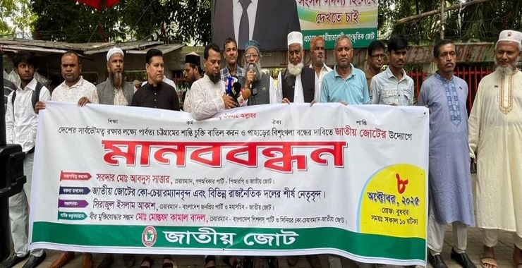 পার্বত্য শান্তি চুক্তি বাতিলের দাবিতে জাতীয় জোটের মানববন্ধন